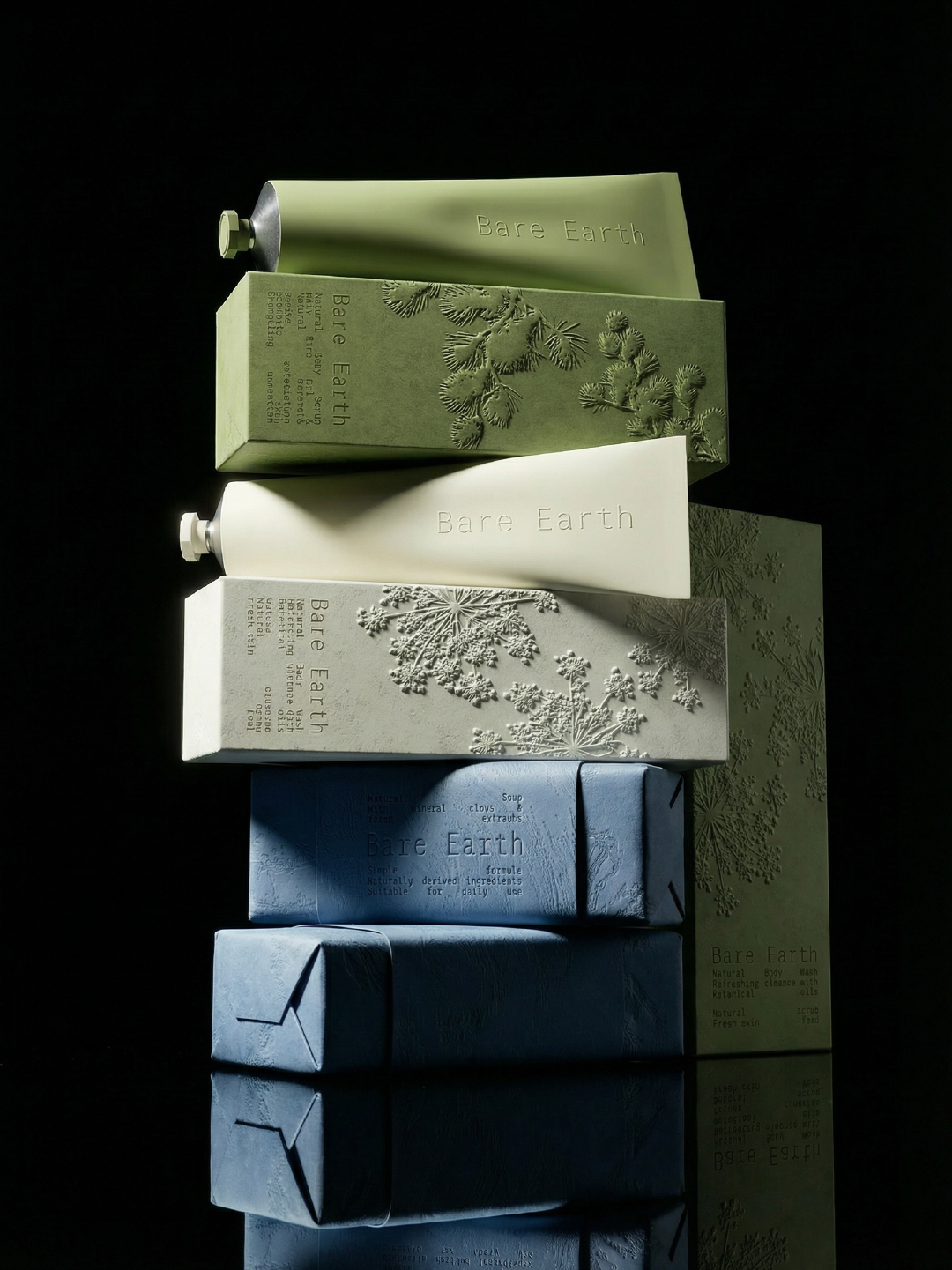 Nakedness is often perceived as something bold, almost provocative. Yet when its meaning is truly understood, it reveals something far quieter, purity of form, the natural state of elements, the honesty of self. The beauty found in nature, its textures, moisture, and softness, forms the fundamental essence of Bare Earth. The packaging design becomes an homage to the way natural textures enrich the user experience. In nature, every surface carries its own identity, shaping how we perceive and interact with the world around us. These subtle tactile encounters elevate human connection, transforming it into a multisensory, memorable, and deeply emotional experience.